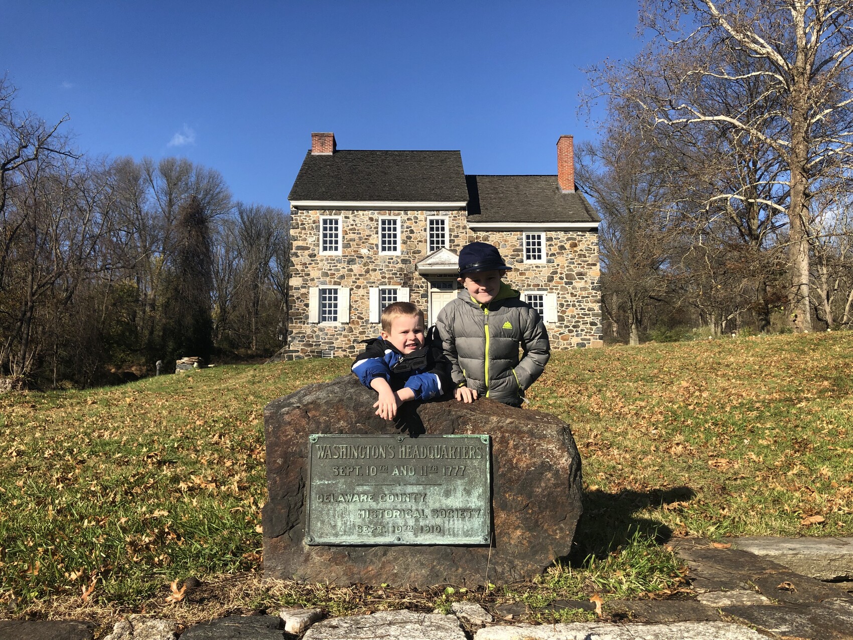 We started our tour at Jefferis’ Ford where Gen. Sir William Howe’s British troops crossed the Brandywine and started the move to turn the American right flank. I had to explain to the boys what a ford was – maybe we need to play more Oregon Trail. Seeing the boys get a little spark as I explained that the British marched right along this road we were standing next to – that’s the reason I love doing things like this with them. There are a few cool markers down there – including two relatively new ones that I was able to add to the HMDB!