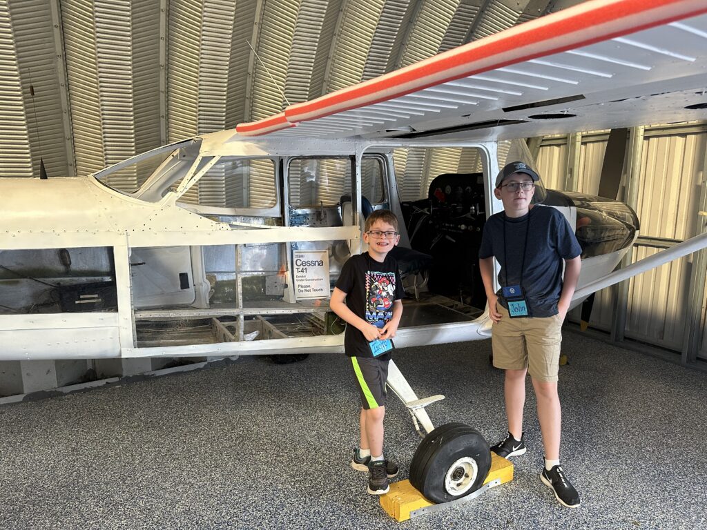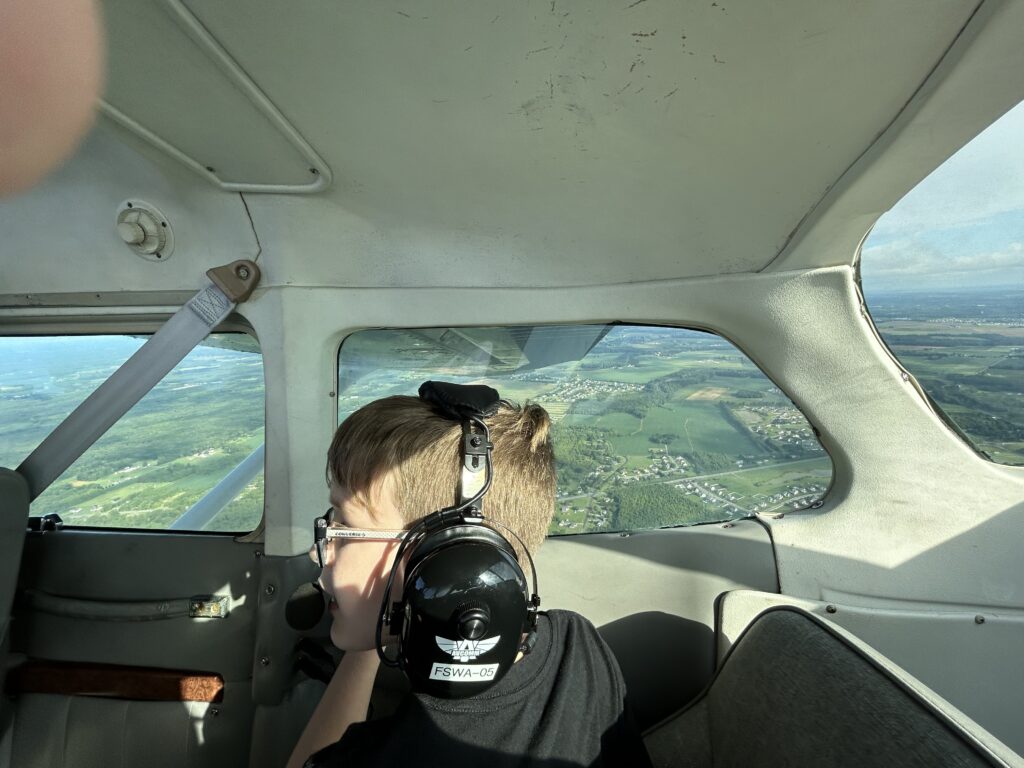 During the summer of 2024, the boys were even able to go to their really cool week-long, half-day summer camp program. They spent a week learning about aircraft, spacecraft, land navigation, and other STEM topics. The highlight of the camp was most definitely a 30-minute ride in a Cessna courtesy of the Dover Aero Club. John took his phone along and got some photos of the ride.