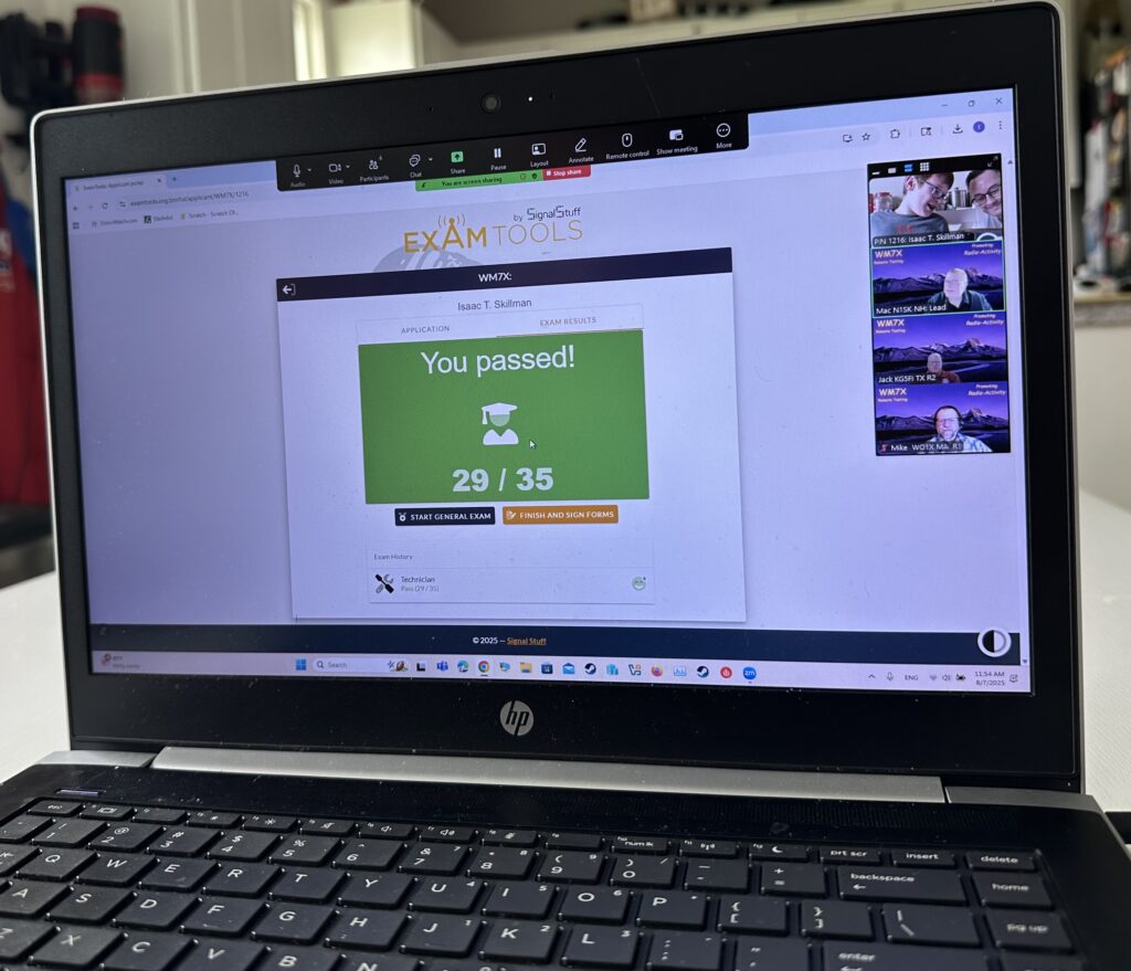 His experience inspired me to jump back in myself. I’m happy to say that after Isaac passed, I picked up some study materials – including the EXCELLENT course on W4EEY’s YouTube channel – and was able to pass my Extra exam with WM7X acting as my VEs as well! In the coming months, I plan to build out an HF station that will enable us to make long-distance – and even worldwide contacts.