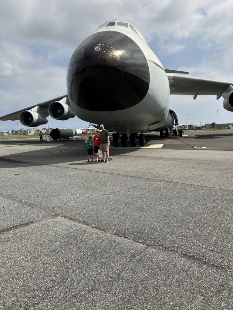The first time we visited the museum, we got to go inside the C-5A. We entered on some air stairs near the rear cargo door, and I noticed a model of the Wright Flyer hanging from above near the cargo door. I asked the docent about it, and he directed my attention toward the front of the cargo compartment where an American flag was hanging near the ladder up to the cockpit. He explained that the span from that Wright Flyer model to the flag was the same distance as the Wright Brothers’ first flight. Incredible that within the span of just 65 years, aircraft technology had progressed that far. It’s still my favorite story from our visits.