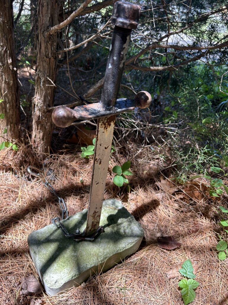Large waterproof boxes make for good caches.This one was made to look like an electrical outlet cover on a street lamp pole. Clever.This one took us a while to find – and no spoilers – it was hidden in the metal top of a fence post!A hidden magnetic cache along the road.A super tiny micro cache with just enough space for a tightly-wound log.A key…but to what?This is probably the most creative cache yet – a custom made “Excaliber” container.Once we solved the location puzzle, the cache itself was a puzzle. Which cap hides the log?