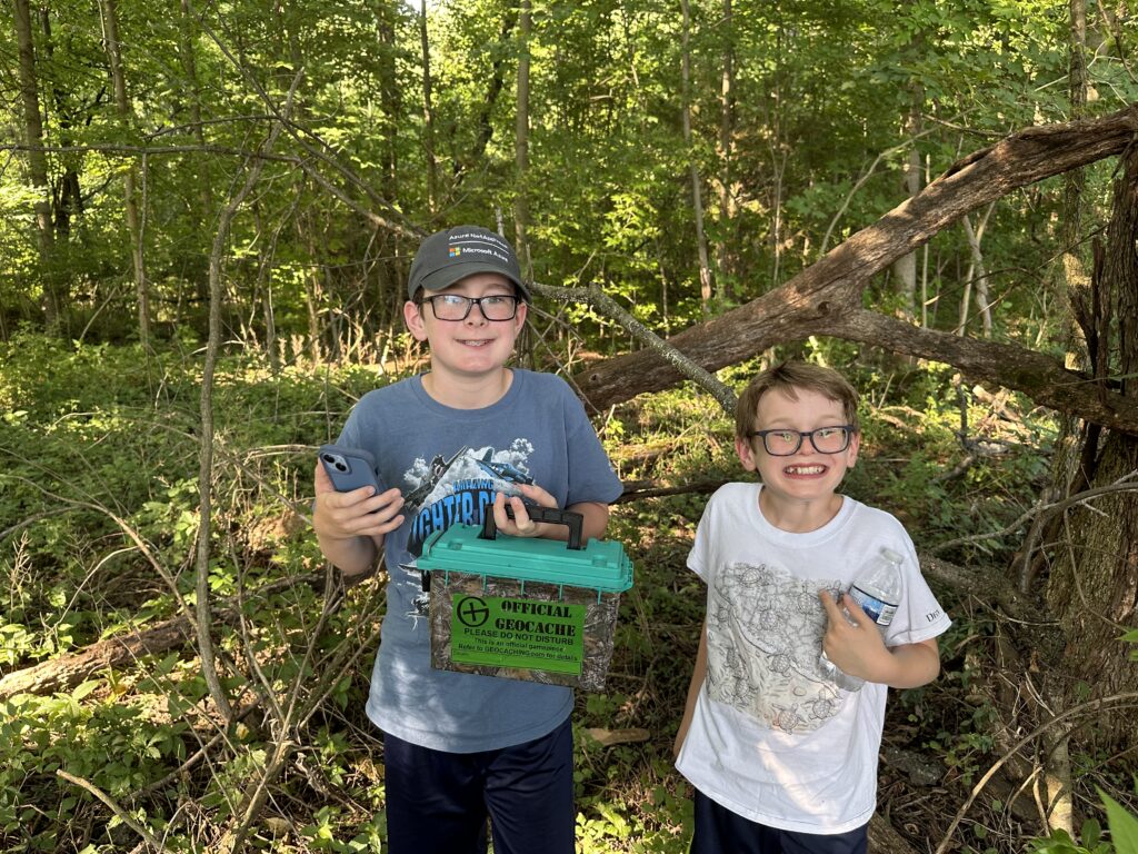When John got his own phone last summer, I was looking through my own apps to see which ones might interest him. One of the first ones that jumped out at me was the Geocaching app. It had been years since I had gone geocaching – certainly before the boys were born – so they had never heard of it. What a joy it was to introduce them!